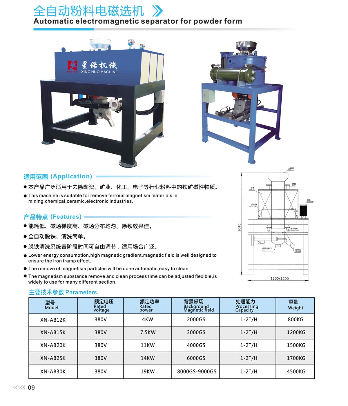 ·Lower energy consumption,high magnetic gradient,magnetic field is well designed to ensure the iron tramp effect. ·The remove of magnetism particles will be done automatic,easy to clean. The magnetism substance remove and clean process time can be adjusted flexible,is widely to use for many different section. |
